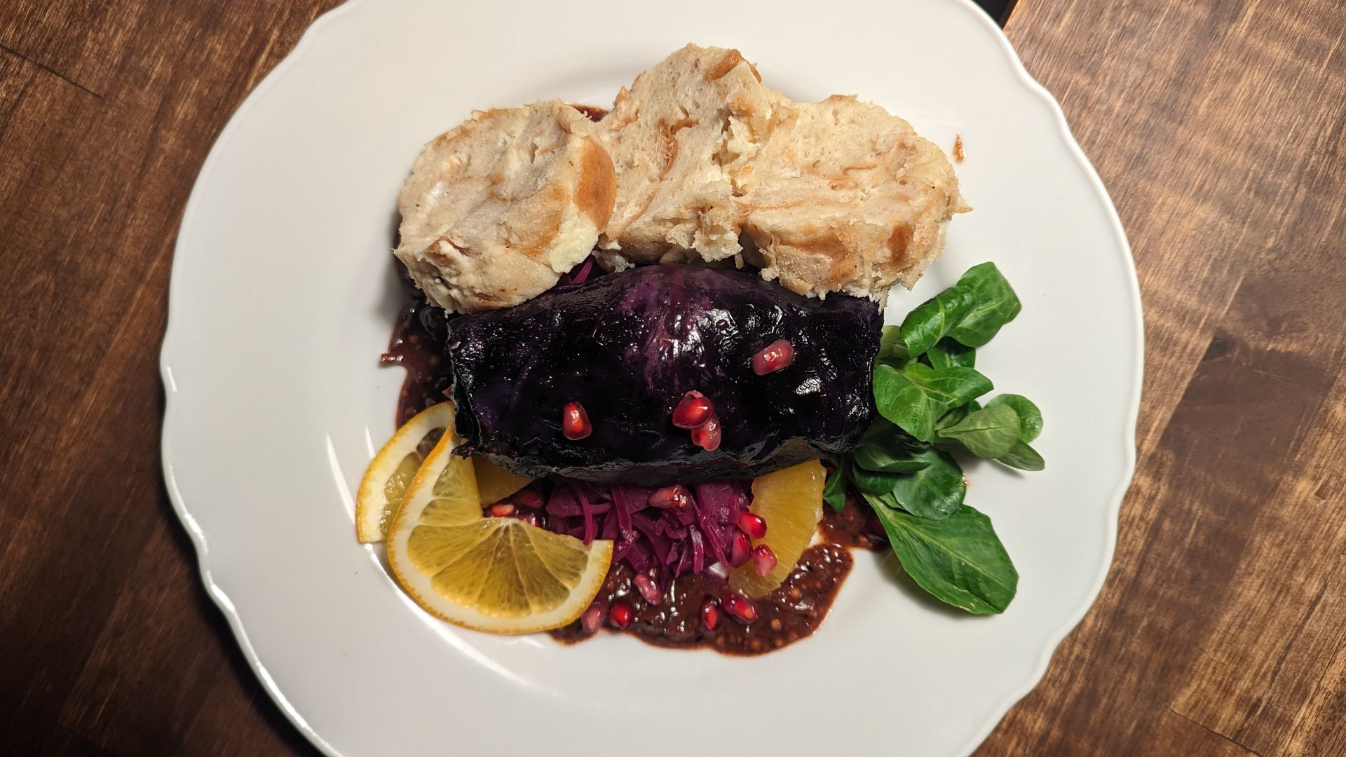Der Dezember naht mit großen Schritten und draußen wird das Wetter mit jedem Tag ungemütlicher. Mehrere Stunden mit heißer Schokolade und warmen Wollsocken am Laptop und dann sind die guten Rotweine und die Geschenkbox zu Weihnachten endlich für Euch im OnlineShop verfügbar. Also wird es Zeit für mich, in der Küche zu verschwinden und ein festliches Rezept für die Geschenkbox auszutüfteln. Und so entsteht mit den Zutaten der Geschenkbox eine Roulade von Rotkohl und roten Linsen an Orangen-Quitten-Rotkraut und im Weckglas gedämpften, locker-luftigen Semmelknödeln. Dazu eine festliche, dunkle Sauce mit dem knackigen Biss von Caviarsenf. Das Rezept ist ganz fleischlos ein Genuss - die vegane Roulade lässt sich aber auch wunderbar durch eine Rinderroulade ersetzen. Die im Sturzglas gedämpften Semmelknödel erlauben eine sehr feuchte Knödelmasse und das sorgt für sagenhaft lockere Semmelknödel. Dazu noch ein guter Wein und die Vorweihnachtsstimmung ist perfekt!